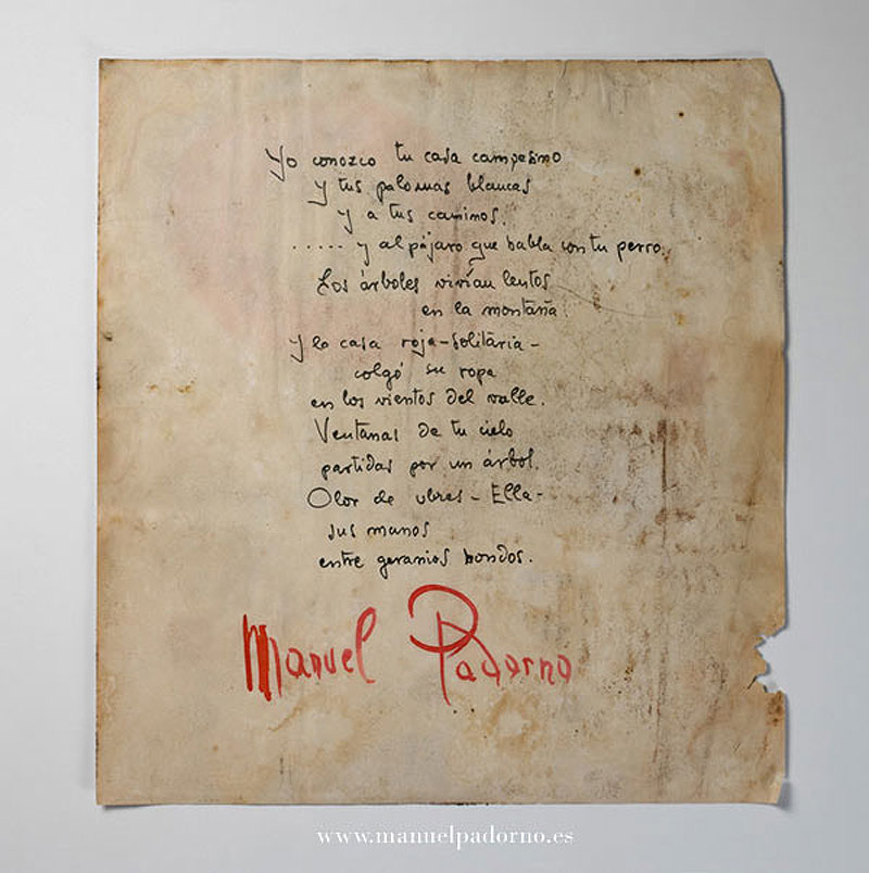 Padorno, tinerfeño de 1933, y de vida errante hasta su llegada a Las Palmas con su familia, en 1944, pertenece –se es de donde se ha hecho el bachillerato, decía Max Aub– a la generación grancanaria del cincuenta, en la que se ubica junto a sus primeros amigos en el mundo de la cultura, el pintor Manolo Millares, los escultores Martín Chirino y Tony Gallardo, y el compositor –y futuro fundador de ZAJ– Juan Hidalgo, con los que comparte un espacio vital, el de la Playa de las Canteras, por él recordado en su poema “Sol de Las Canteras” –en Diario de Las Palmas, 24 de marzo de 1966–, y que luego, como a su debido tiempo veremos, sería el espacio donde se alzaría su definitiva casa de la vida. Años muy bien evocados por Millares, en sus Memorias de infancia y juventud, que edité en el IVAM, en 1998, y de las que, de 1953 en adelante, Padorno es, como no podía ser de otro modo, uno de los protagonistas. “En casa, el joven Padorno (Manolo) casi comenzó a hacer poesía. La primera vez que nos visitó de la mano de José María Benítez (…) nos leyó cosas con fuerte influencia de Antonio Machado”. Y también: “Con una imaginación desbordada y fuertes dotes de poeta fue encontrando un mundo con cierto apoyo surrealista, pero con una dimensión totalmente nueva. Cada día llegaba a vernos con cosas nuevas impregnadas de esa espontaneidad muy suya”. Según confesión propia, por aquella época el poeta en ciernes, trabajador durante un tiempo en la fábrica de conservas Escobio, ubicada en la propia playa, ya había leído cosas relativamente modernas: los poemas en prosa de Baudelaire, El poeta asesinado de Apollinaire, Opio de Cocteau, las Literaturas europeas de vanguardia de Guillermo de Torre, y títulos de Alberti, Dámaso Alonso, Ramón Gómez de la Serna, Kafka, Neruda, César Vallejo…