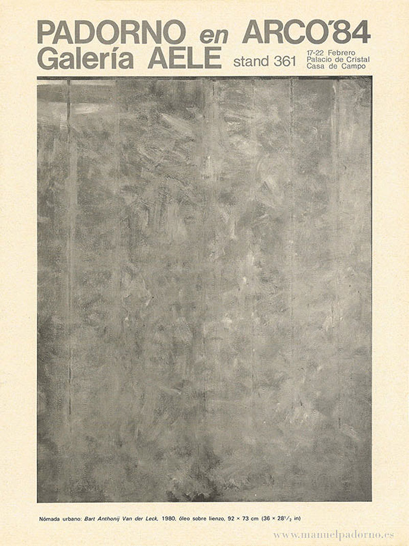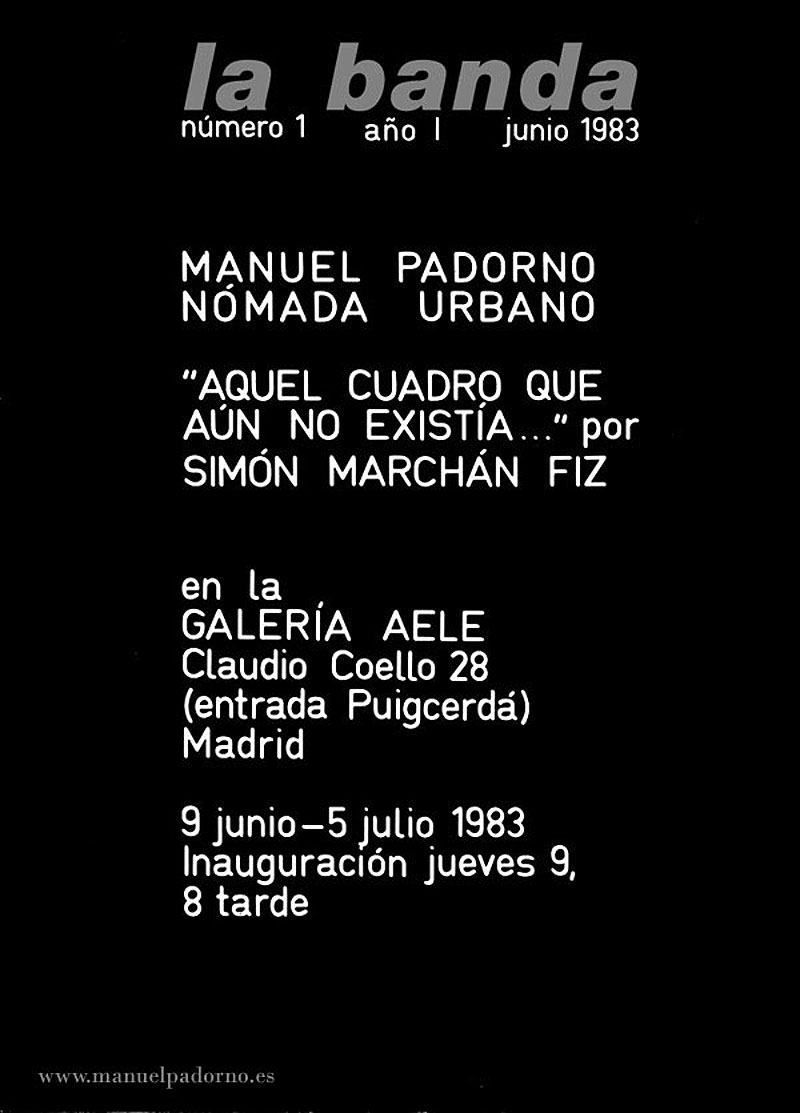 | Nómada urbano, Galería Aele, Madrid, 1983. (Contiene: Marchán Fiz, Simón: “Aquel cuadro que aún no existía...”). |